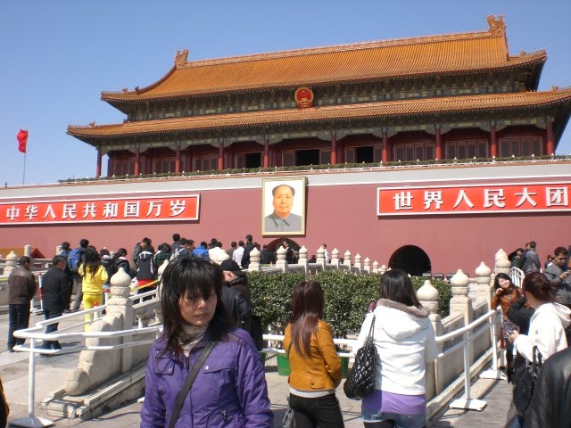 When we emerged at the front entrance of the Forbidden City, we were directly across the street from Tiananmen Square, which is where the infamous massacre of protesting students occurred. The iconic image of Chairman Mao hanging above the front entrance of the Forbidden City was also there.
